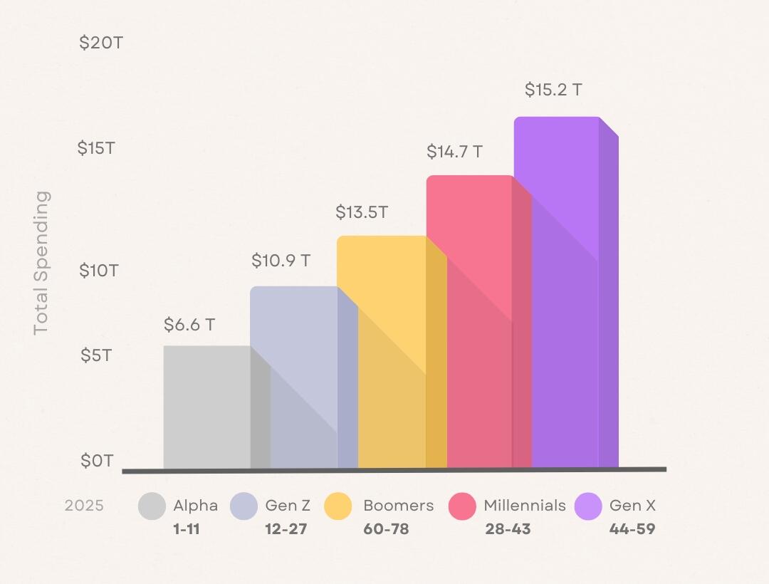According to World Data Lab, Gen X is poised to exert dominance with its wallet. In 2025 alone,Gen X will spend an estimated $15.2 trillion.